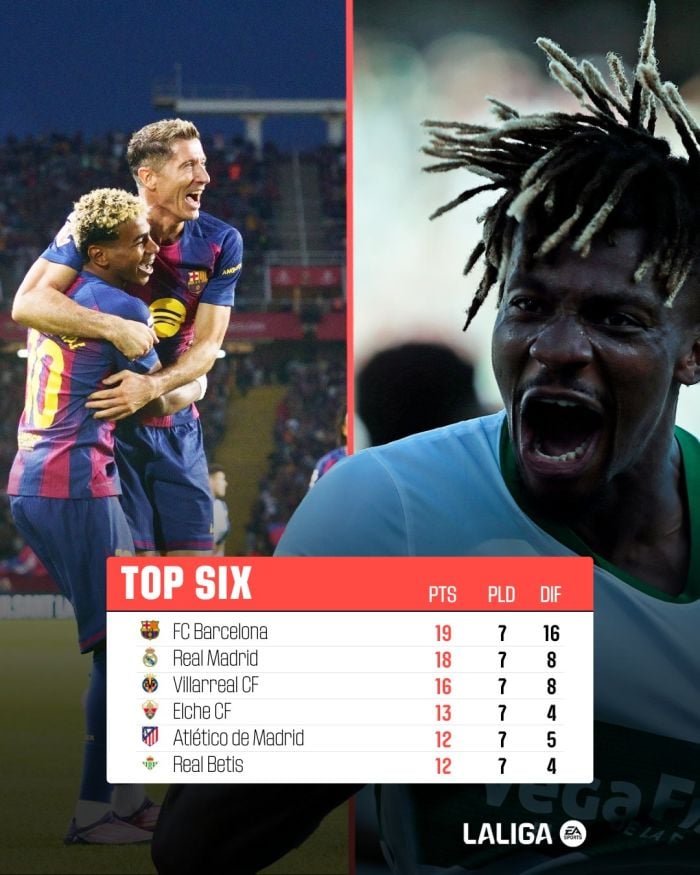 Առաջատարը չեմպիոն «Բարսելոնան» է, որը 19 միավոր եւ 1 միավոր առաջ է երկրորդ տեղում ընթացող փոխչեմպիոն Մադրիդի «Ռեալից»։
