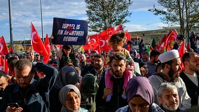 Թուրքիայի մայրաքաղաք Անկարայում ցուցարարները պահել են դրոշներ և պաստառներ՝ դատապարտելով Գազայում տեղի ունեցող «ցեղասպանությունը»։ Իսկ արևմտյան նավահանգստային Իզմիր քաղաքում բնակիչներն իրենց աջակցությունն են հայտնել Սումուդ միջազգային նավատորմին, որը նախորդ շաբաթ Իսրայելի զինված ուժերը կասեցրել էին՝ Գազայի ծովային շրջափակումը խախտելու փորձի ժամանակ։
