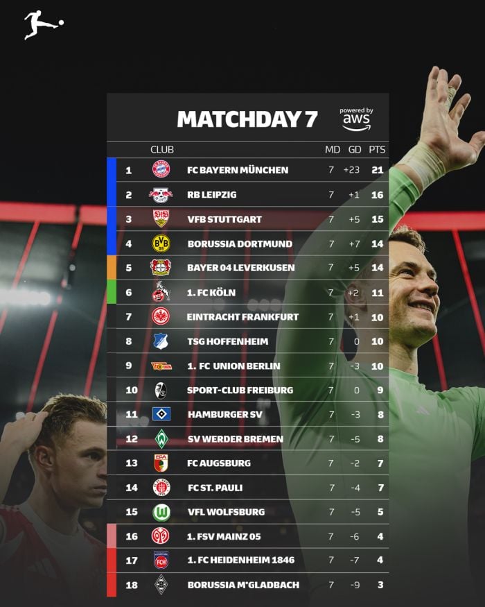 Ֆուտբոլի Գերմանիայի Բունդեսլիգայի առաջնությունում ավարտվել են 7-րդ տուրի հանդիպումները։