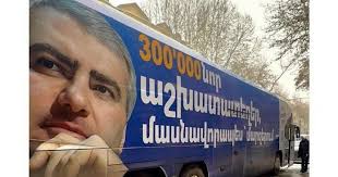 «Այսօր տրվել է արշավի մեկնարկը։ Սամվել Կարապետյանի գլխավորած ուժի ներկայացուցիչները մեծ ավտոբուսով շրջելու են Հայաստանով ու ներկայցնեն տնտեսական փոփոխությունների ծրագիրը։ Ավտոբուսի վրա պատկերված են Սամվել Կարապետյանի լուսանկարն ու տնտեսական ծրագրի կետերը։ Դրանցից առաջինը 300 հազար նոր աշխատատեղերի ստեղծումն է` հատկապես մարզերում»։