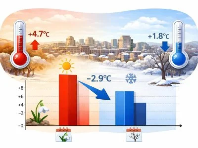 «2026 թվականի փետրվարին Երևան քաղաքում օդի միջին ամսական ջերմաստիճանը կազմել է +4.7°C, ինչը կլիմայական նորմայից բարձր է 4.6°C-ով։ Այսինքն՝ փետրվարը եղել է զգալիորեն տաք՝ գրեթե գարնանային պայմաններով։