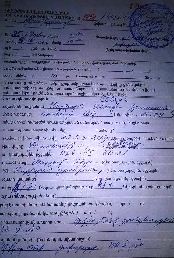 Իսկ առձեռն փոխանցումների համար կարող եք պայմանավորվել երեխայի մոր՝ Աիդայի հետ՝ /077/95-80-81 համարով և այցելել ՞Արաբկիր՞ ԲԿ, Մամիկոնյանց 30, ՞Թոքաբանական՞ բաժանմունք, 1-ին հարկ, 108 պալատ: