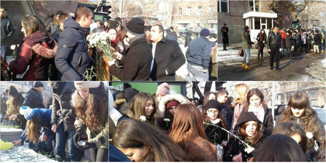 ՀՀԿ երիտթևի ներկայացուցիչներն իրենց ղեկավար Կարեն Ավագյանի գլխավորությամբ հավաքվել էին Հայաստանում Ռուսաստանի դեսպանատան առաջ` հարգանքի տուրք մատուցելու երեկ Անկարայում սպանված ՌԴ դեսպան Անդրեյ Կառլովի հիշատակին։