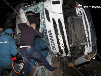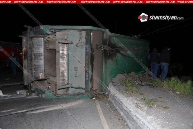 Պարզվել է, որ «Սանիթեք» ՍՊԸ-ին պատկանող «SCANIA» մակնիշի 344 OF 61 պետհամարանիշի ավտոմեքենան (վարորդ՝ Գ. Խ., մոտ 25 տարեկան) դուրս է եկել ճանապարհի երթեւեկելի հատվածից եւ կողաշրջվել: