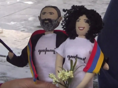 Վարչապետ Նիկոլ Փաշինյանին կառավարության շենքի մոտ սպասում է անակնկալ– նվեր՝ իր եւ տիկնոջ Աննա Հակոբյանի տեսքով տիկնիկներ։
