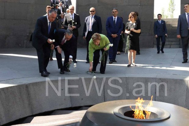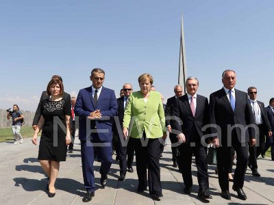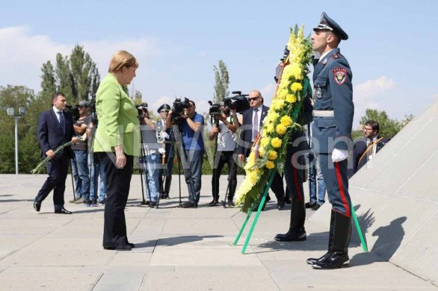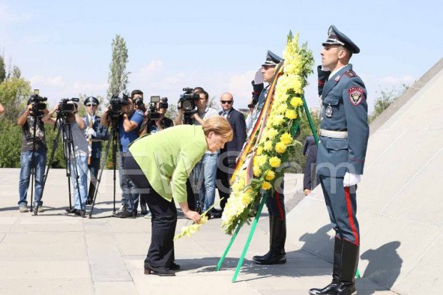 Գերմանիայի կանցլեր Անգելա Մերկելն «Զվարթնոց» օդանավակայանից անմիջապես ուղեւորվեց Ծիծեռնակաբերդի հուշահամալիր: Նրան ուղեկցում էին ՀՀ արտաքին գործերի նախարար Զոհրաբ Մնացականյանը եւ Երեւանի քաղաքապետի պաշտոնակատար Կամո Արեյանը (ֆոտոռեպորտաժ):