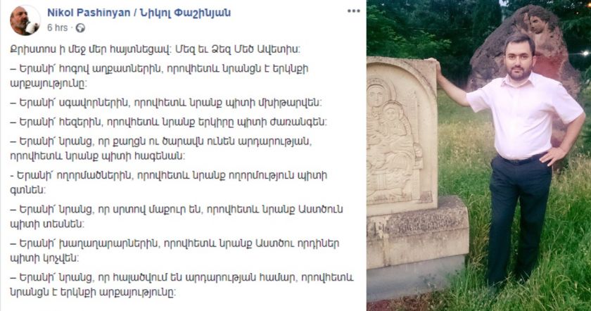 Խայտառակություն է, երբ ազգիդ վարչապետը չի տարբերում Հայտնությունը Հարությունից, և հարության օրը Քրիստոսի ծննդյան ավետիսն է փոխանցում ժողովրդին։ Բաներ կան, որոնց պարագայում չի կարելի փորձել «ինքնատիպ» լինել, այլապես սխալվելն անխուսափելի է։