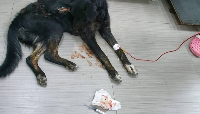 «Դինգո թիմ»-ի ֆեյսբուքյան էջում կարդում ենք. «Այս շունը հասավ մեզ ուշագնաց, արնաքամ ու մահամերձ վիճակով: Այնքան արյուն էր կորցրել, որ լնդերը լրիվ սպիտակել էին: